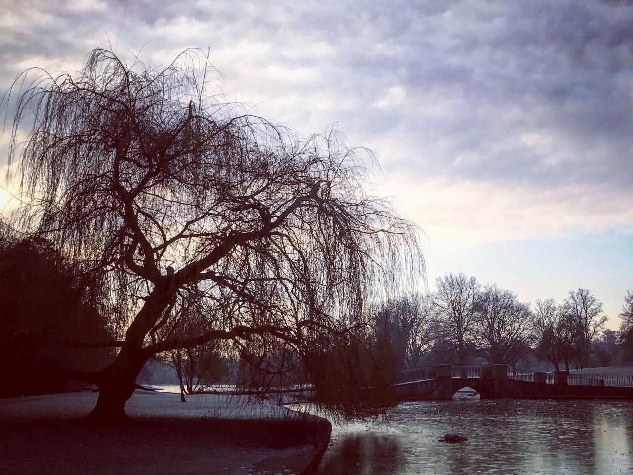 rambunctious geese land: instead of elegantly landing on the water’s surface they were sliding around like drunken ice skaters! Hooves was entranced by this and we had to stand and watch for a toe-chillingly long time… We eventually wandered past the lake, across the main path to the river and were rewarded with the sight of a heron having a paddle. He was so used to seeing people that he barely batted an eyelid when he saw us.