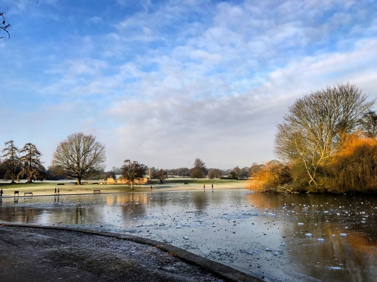 One of the main attractions of the park for the average hound might be the ornamental lake, which is fed by the River Ver. It really is rather beautiful, with a small island in the middle where a lot of the wildfowl congregate. These include swans, mallards, great crested grebes, tufted ducks, herons and coots. The day we visited is was pretty chilly and large areas of the lake were frozen, which made it highly entertaining to watch the usually