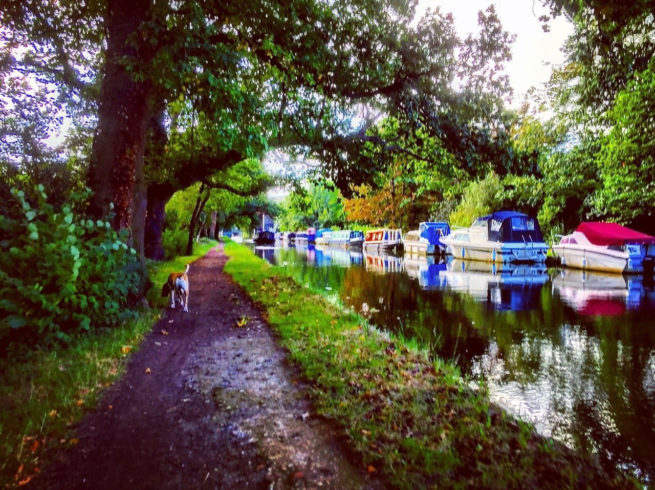 trains pass so quietly you barely notice them even when they are right in front of you. At this point you have a choice: to carry on along The River Wey (The Wey Navigation) towards Pyrford, or to hang a right, cross over the footbridge and set off down The Basingstoke Canal, which takes you towards Sheerwater and Woking. Then of course the only decision you have to make is how far you go before you turn back…