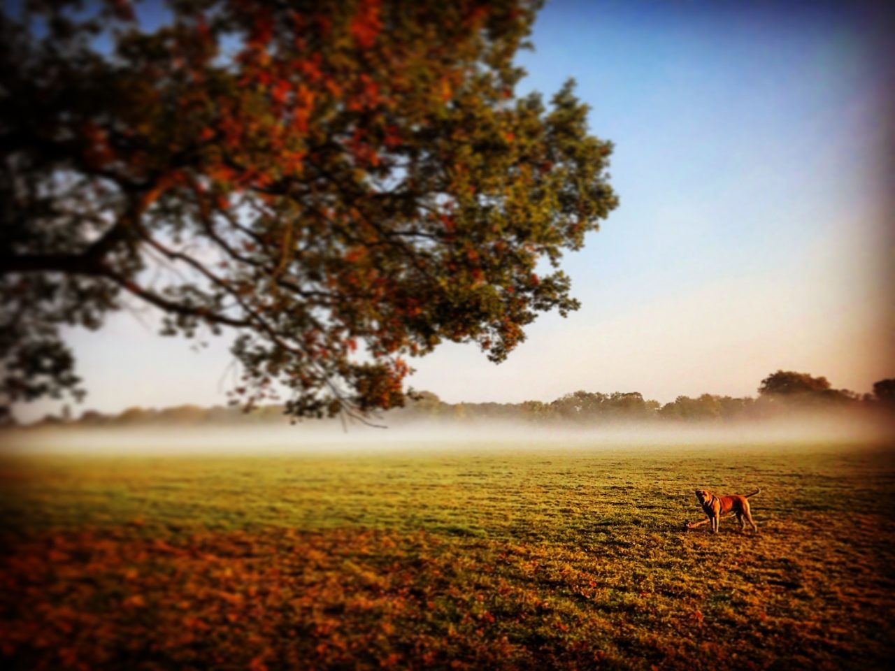 Nearly 800 years ago, King John met with a group of barons on the water meadows at Runnymede. This was the site where he sealed the Magna Carta, seen by many as the symbolic first step on the road to modern democracy. Today Runnymede has several memorials to the ongoing struggle for liberty, and I have always fancied seeing them…so on Sunday morning Hooves and I finally went for a dog walk through history at Runnymede in Surrey. It was a typical autumn morning: chilly and misty, but with the promise that the sunshine would push it’s way through the gloom….perfect for going to Runnymede.